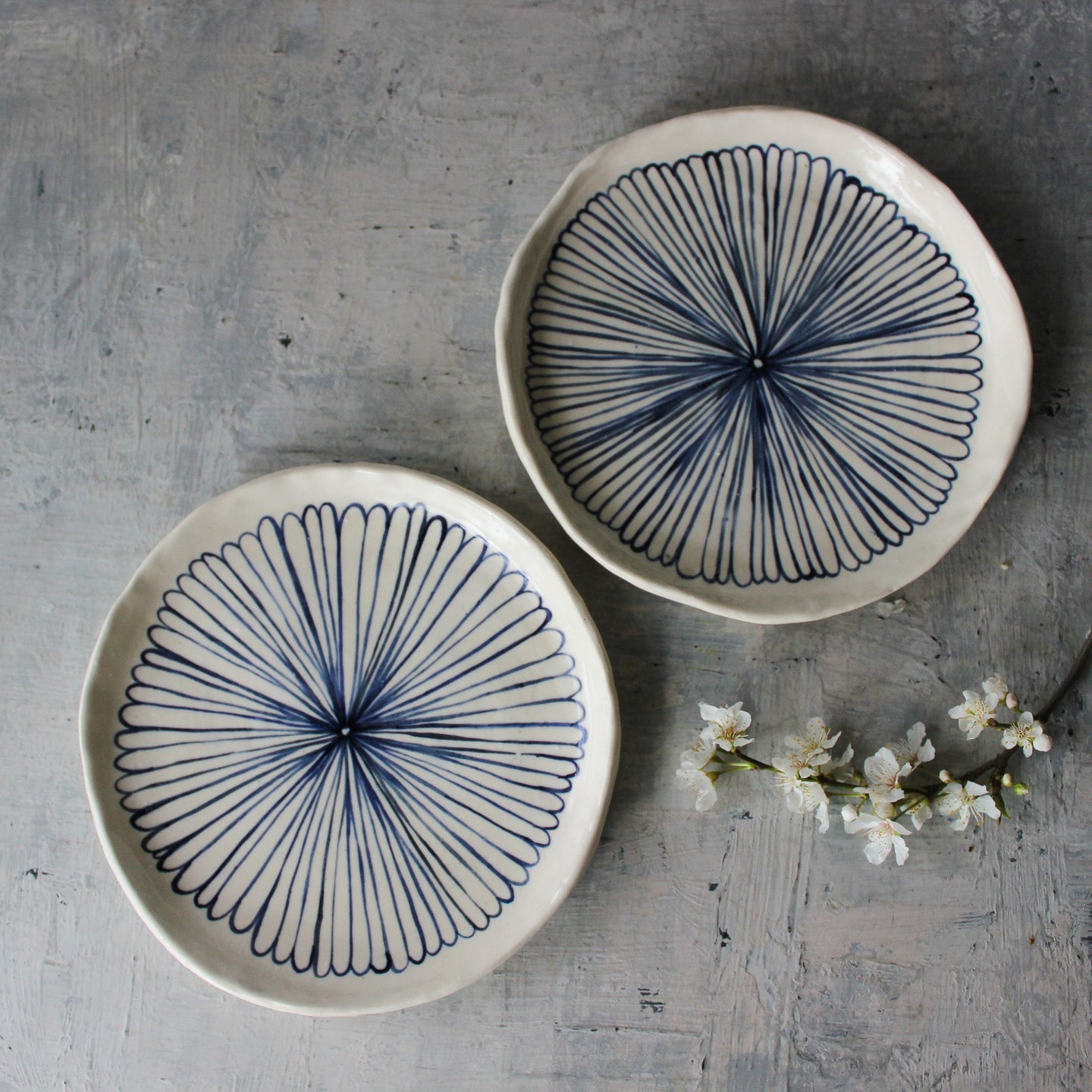 Katherine Wheeler's beautiful hand-painted daisy design captured in these unique ceramic plates.