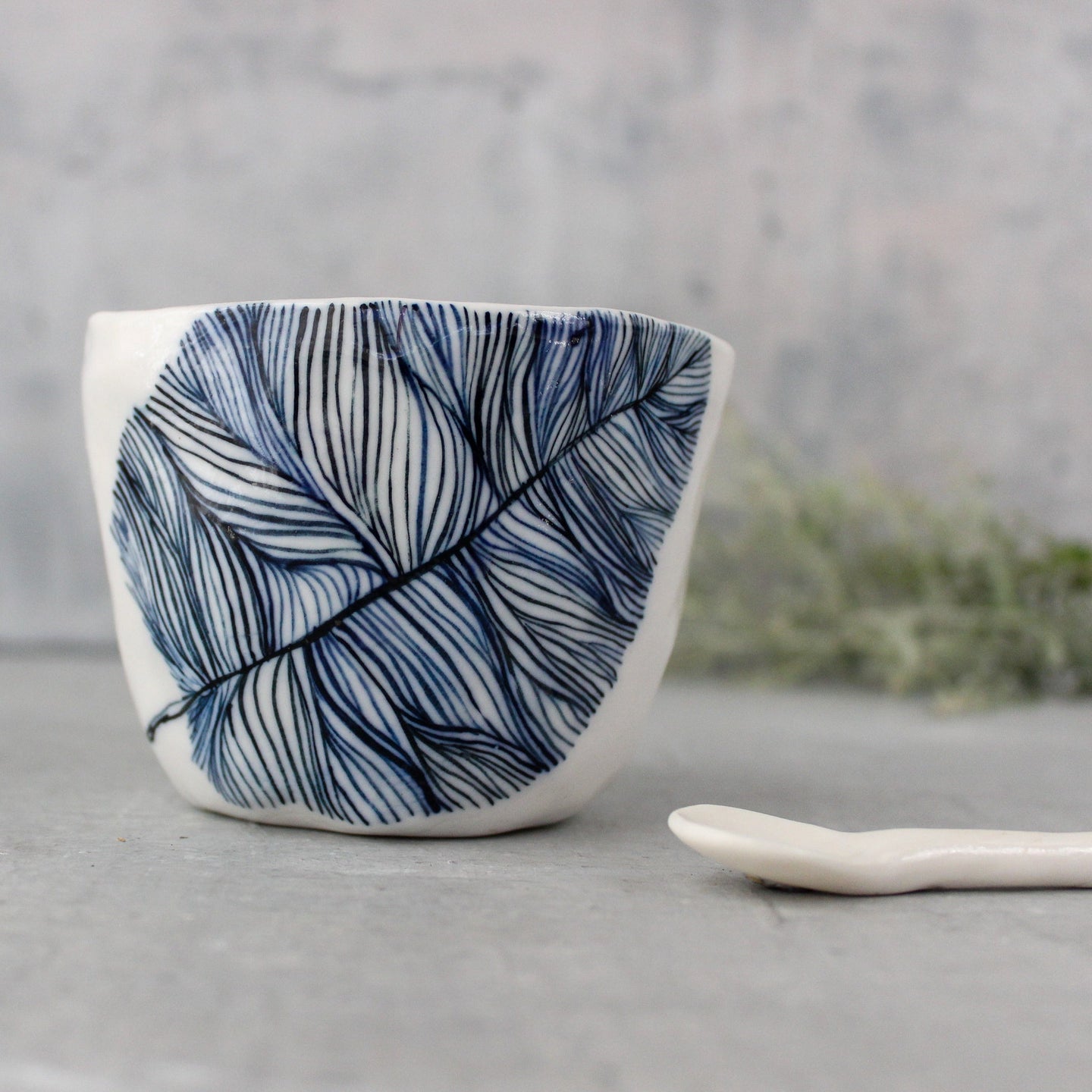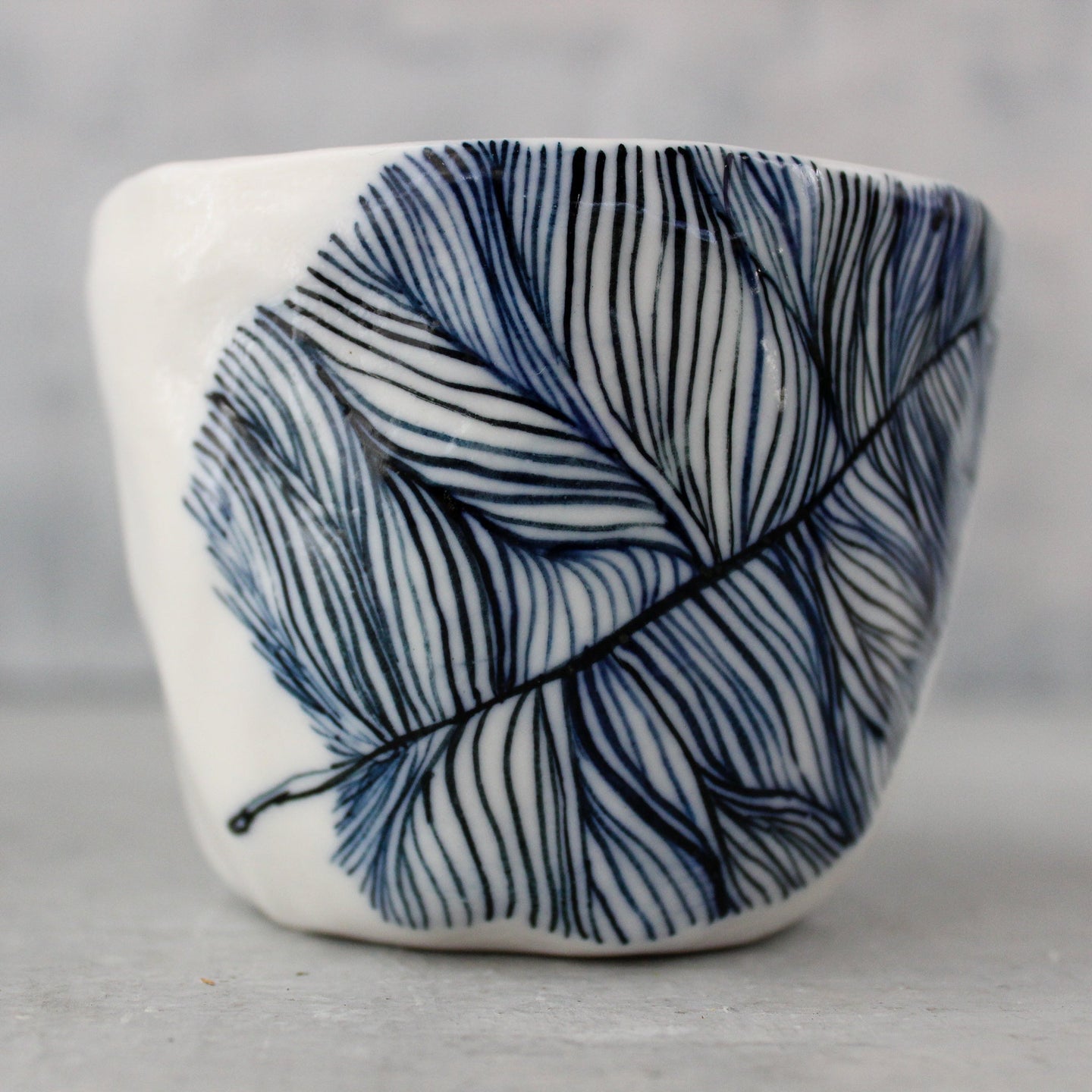 Katherine Wheeler's hand-painted feather design captured in these beautiful ceramic latte cups.