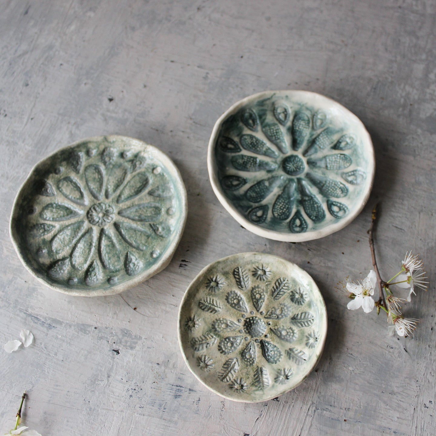 Sweet little ceramic trays, perfect for placing under planters, holding pillar candles or collecting little things around the home and studio.