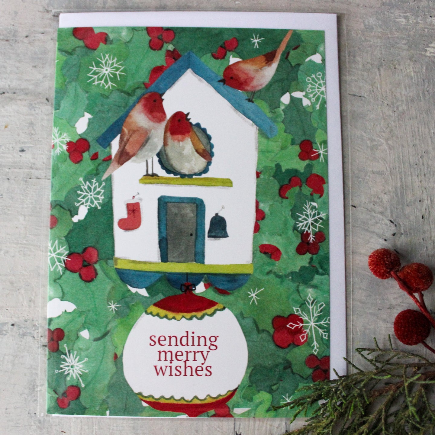Cute festive robin greeting card from Australian illustrator, Jess Racklyeft.