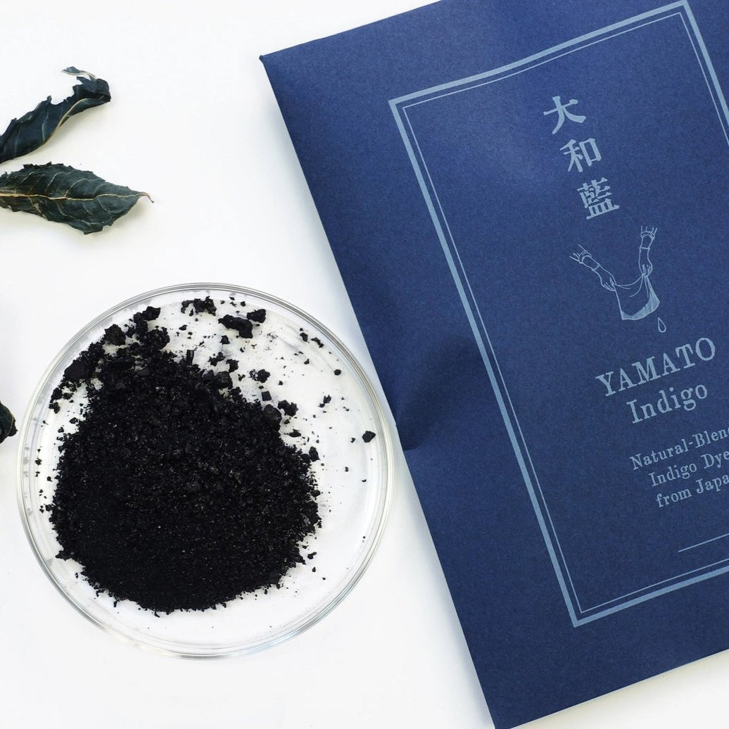 Made in Japan, Yamato Indigo powder consists of extracts from indigo plants, synthetic indigo, alkaline agent, and reducing agent.