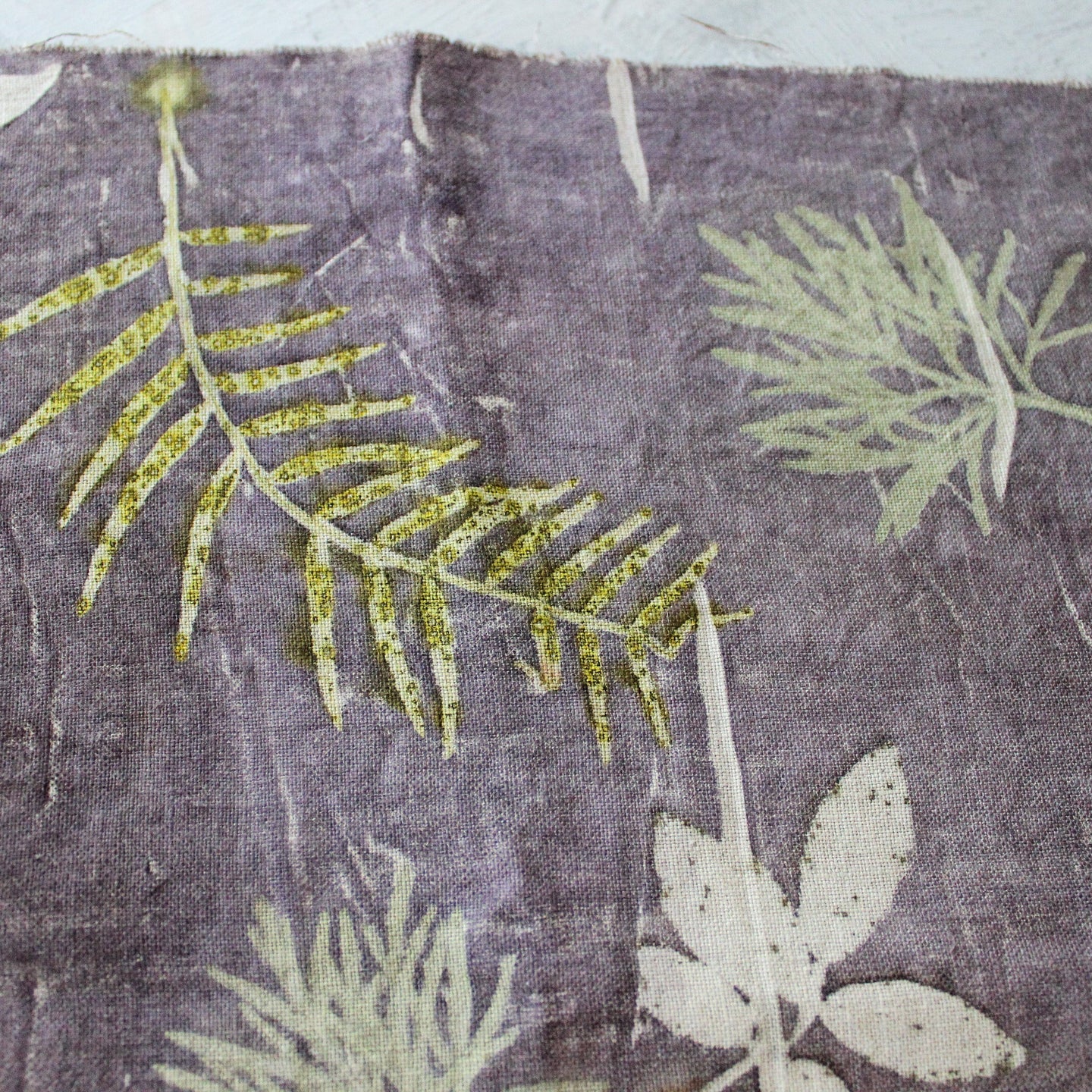 Locally made, botanical eco-print linen placemat panels, a unique home decor accent or perhaps inspiration for your next bespoke textile project.
