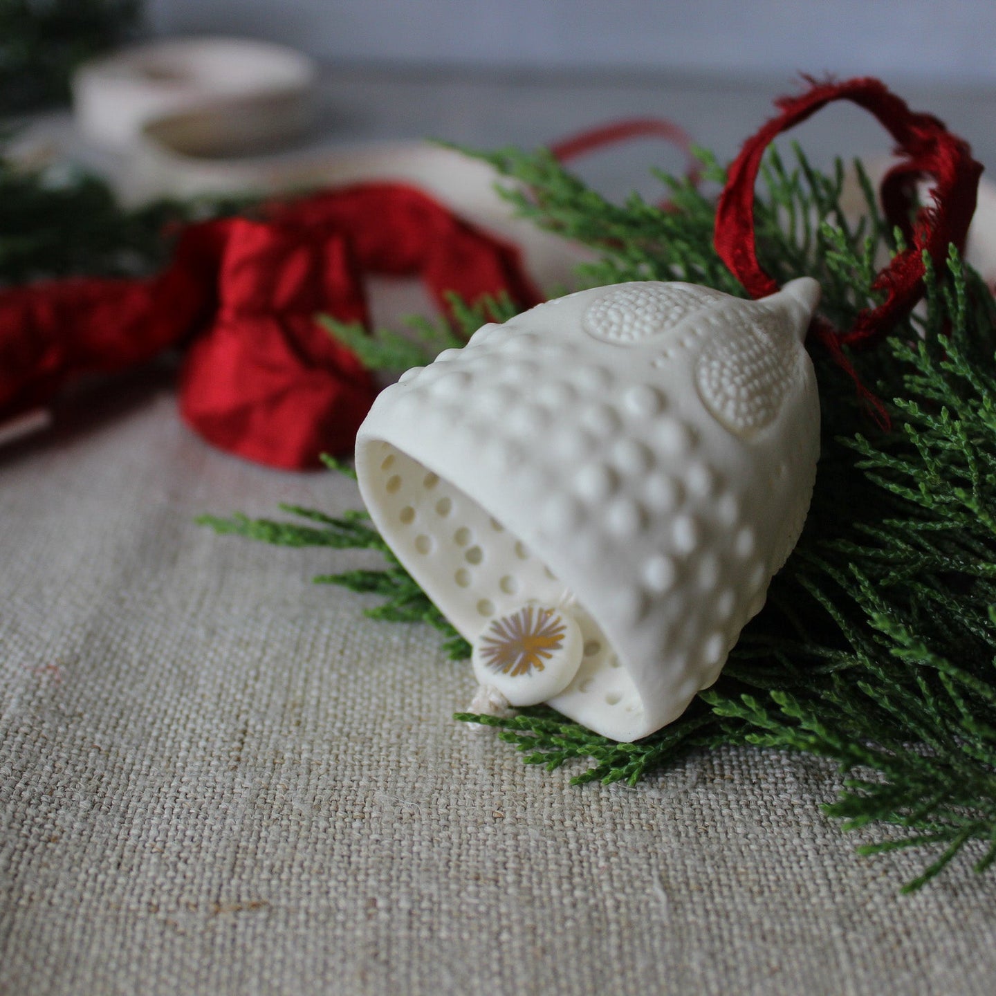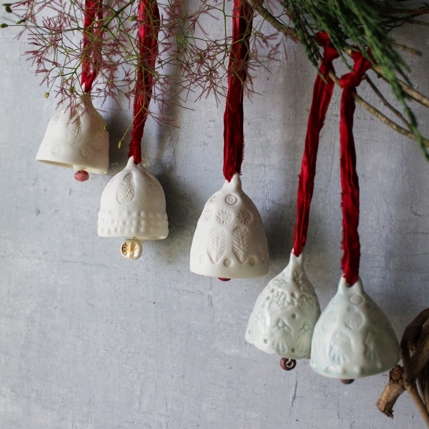 Pure white porcelain bells, an elegant festive touch to your Christmas decor.