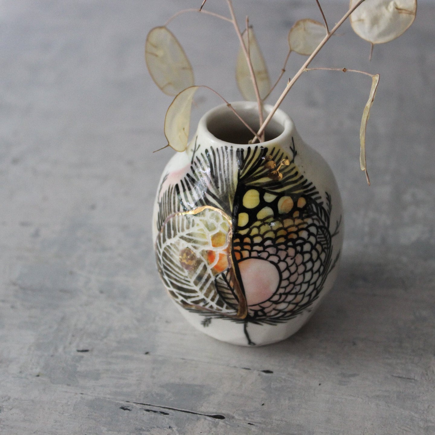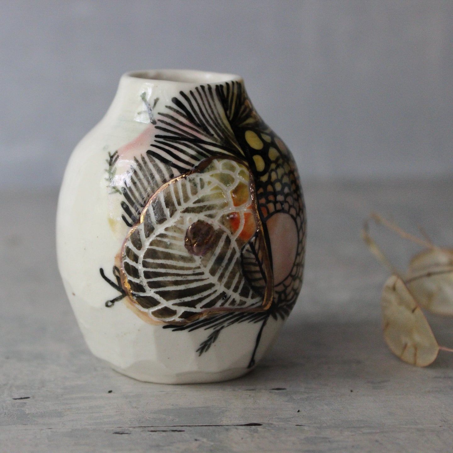 Katherine Wheeler's intricately detailed artwork captured in this unique little ceramic vase.